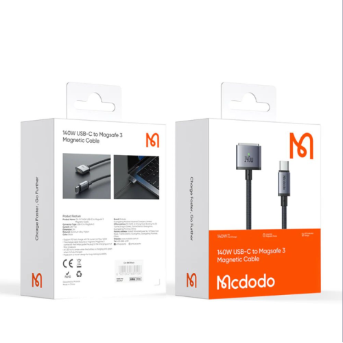 Кабель Mcdodo Magnetic Fast Charging Cable 140W USB-C to MagSafe 3 має магнітний роз'єм, який дає змогу легко та швидко під'єднувати та від'єднувати кабель, не пошкоджуючи порти пристроїв. Кабель сумісний з різними пристроями, такими як MacBook, MacBook Pro, MacBook Air та іншими пристроями з роз'ємом MagSafe 3. З іншого кінця кабель оснащений роз'ємом USB-C, тому буде сумісний із зарядними пристроями з таким же роз’ємом.