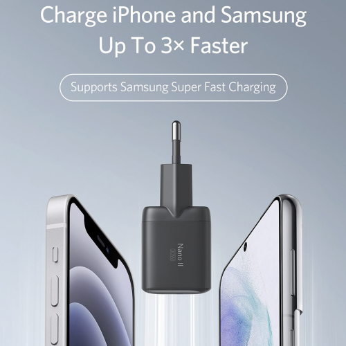 - Завдяки 100% збільшенню робочої частоти, інноваційному багатошаровому дизайну й оновленій структурі друкованої плати технологія GaN II робить зарядний пристрій Anker меншим без втрати потужності.