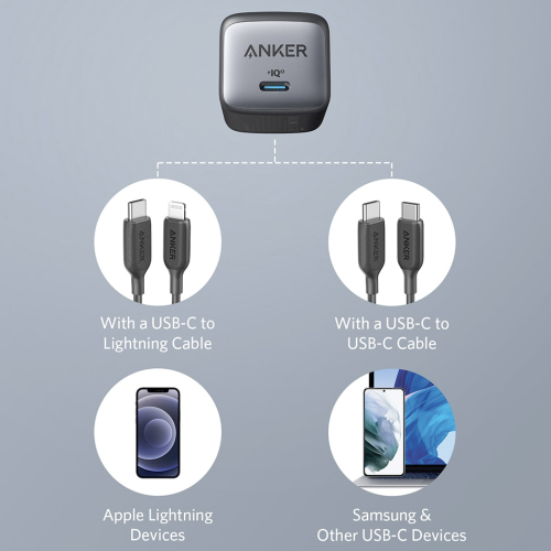 - Попрощайтеся зі своїми старими блоками живлення. Anker Nano II має потужність, необхідну для швидкої зарядки телефону, планшета та ноутбука з USB-C за допомогою одного крихітного зарядного пристрою.