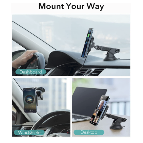 ESR HaloLock MagSafe - это магнитный автодержатель с беспроводной зарядкой. Держатель имеет шарнирное крепление - вращается на 360 градусов. Телефон можно устанавливать вертикально и горизонтально. Интеллектуальное управление нагревом позволяет этому зарядному устройству обеспечивать скорость, почти идентичную официальным зарядным устройствам MagSafe. Требуется адаптер QC 18 Вт. Держатель надежно крепится к приборной панели или лобовому стеклу с помощью многоразовой присоски. Мощные магниты HaloLock и нескользящее силиконовое кольцо надежно удерживают ваш телефон на месте даже на самых неровных дорогах.