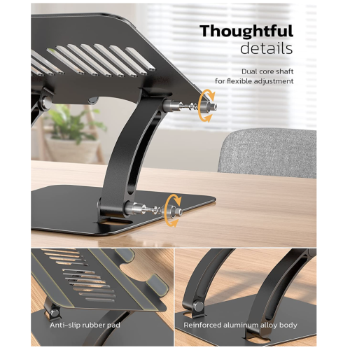 Підставка від Nulaxy - це ідеальний помічник на столі, щоб позбавитися поганої постави при використанні ноутбука. Міцна алюмінієва конструкція забезпечує надійну стійкість ноутбука, а також є радіатором для охолодження його. Чудовий дизайн Z-типу забезпечує комфорт при наборі тексту на клавіатурі, а гумові прокладки на поверхні дозволяють надійно утримувати ноутбук на місці та максимально захищають пристрій від подряпин та ковзання. Універсальна сумісність: ця підставка для ноутбука може працювати з усіма ноутбуками від 11 до 16 дюймів, такими як MacBook, MacBook Air, MacBook Pro, Microsoft Surface, Pixelbook, Dell XPS, HP, ASUS, Lenovo, Acer, Chromebook, Alienware та іншими .