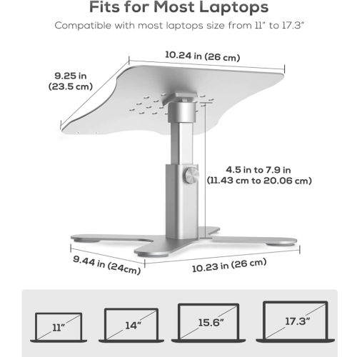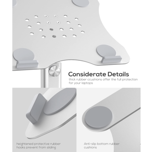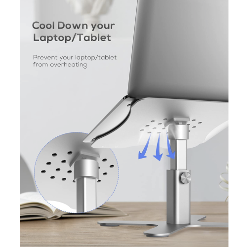 Тонкая и компактная подставка, которая поднимет ваш ноутбук до идеального уровня глаз, что обеспечит хорошую осанку при работе за ноутбуком. Можно регулировать высоту (от 114 мм до 200 мм) и угол обзора (от 45 ° до 90 ° угла обзора). Подставка изготовлена из прочного алюминиевого сплава с гладкими краями и резиновыми накладками для предотвращения царапин и скольжения вашего устройства. Эта регулируемая подставка подходит для всех планшетов и ноутбуков от 10 до 17 дюймов.
